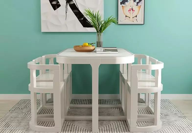 但是圆桌一般来说以实木居多,体积庞大、价格也不便宜,不太适合小户型和预算有限的家庭。家里人少,一两个菜放在转盘上也不方便;再者椅子笨重,打扫搬动也很费力。