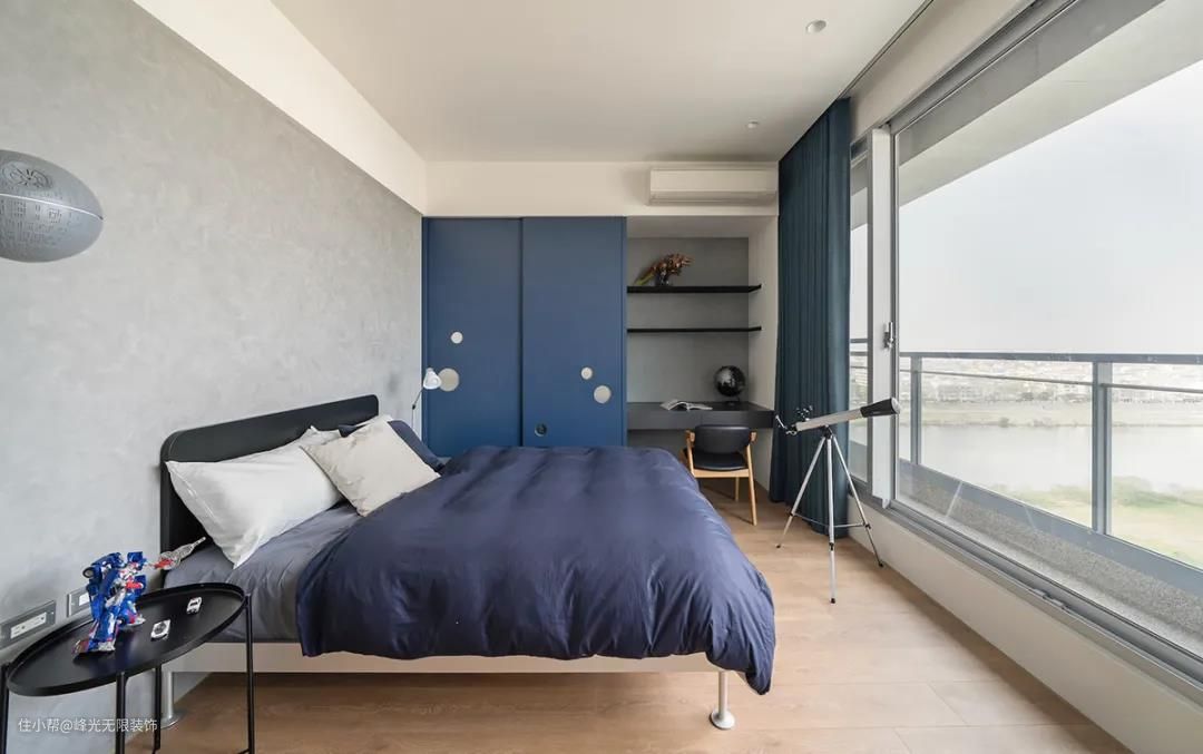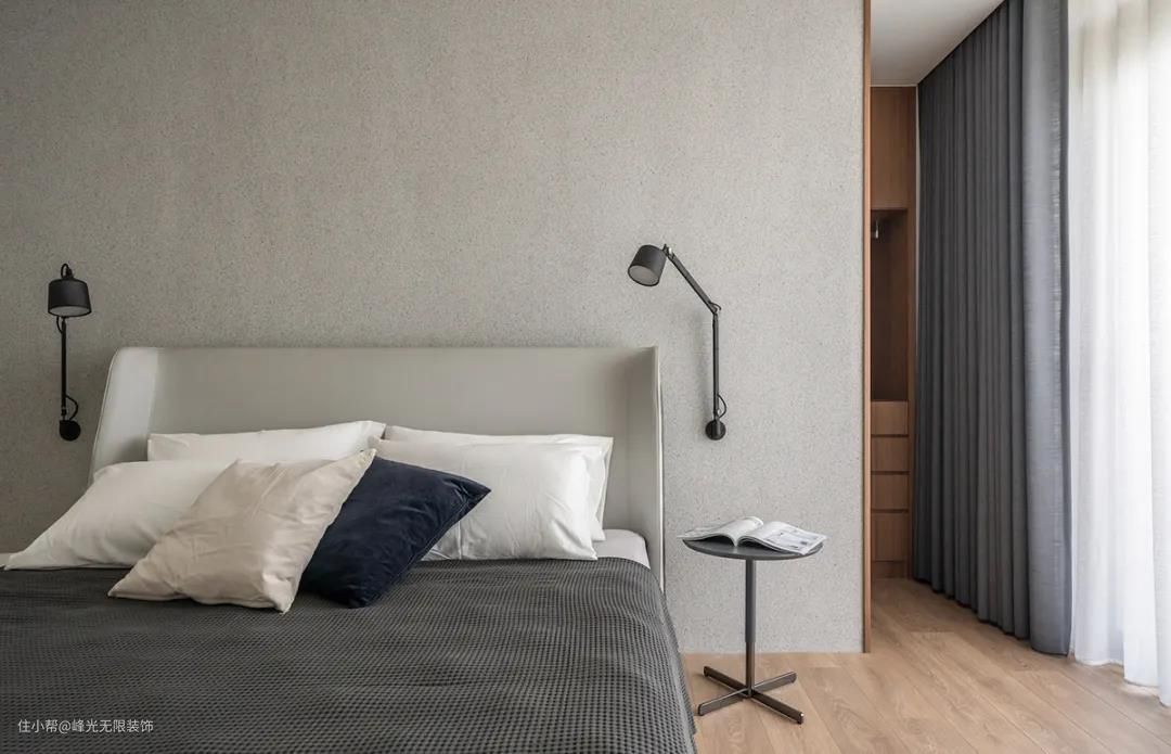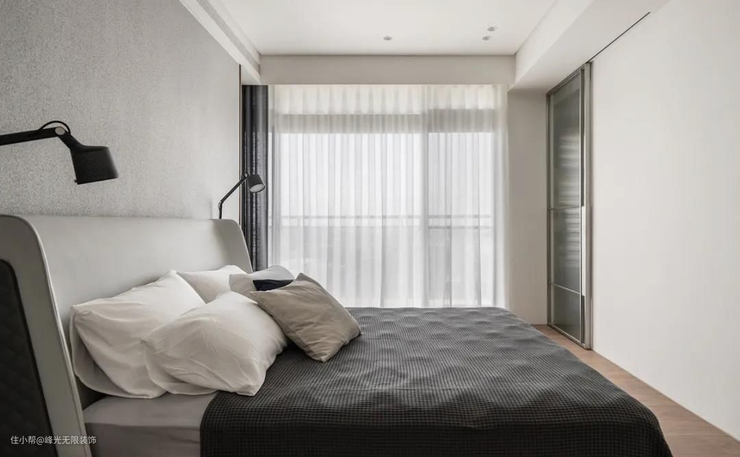 卧室以轻透的冷色系为主轴,平抚一日奔波的繁杂心思,回归纯粹简约的概念。