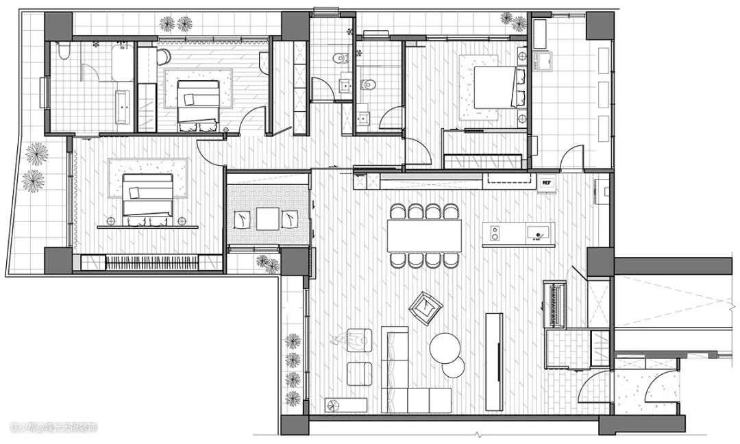 188㎡日系风四室装修将,原结构进行打破重组,重新规划布局