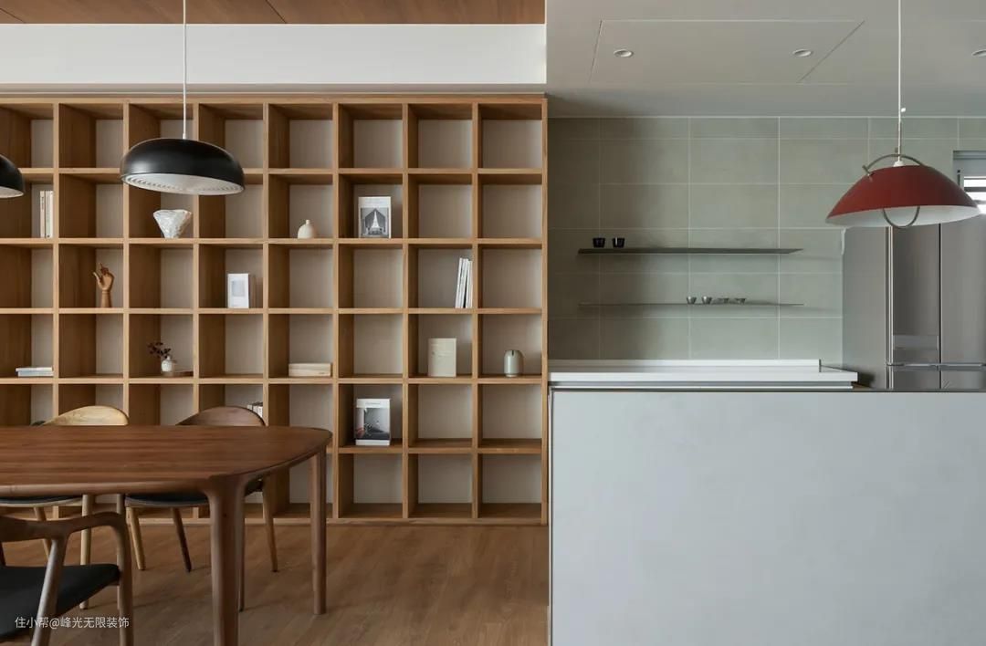 沿着墙体设计开放式收纳格,收纳屋主大量书籍与家饰艺品。