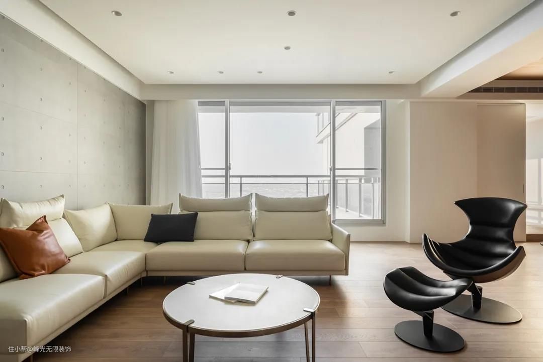 客厅去除多余墙体,以自然有机的流线、灵活弹性特性,展现毫无拘束的居家日常。