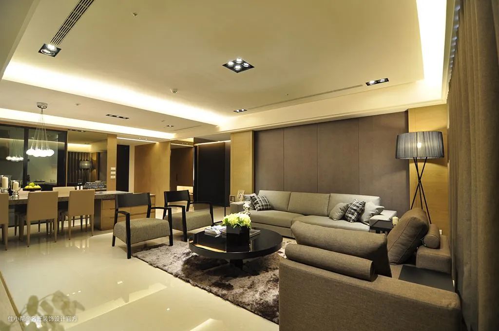不过现在很多商品房的层高不够高,吊顶之后会把整个视觉感拉低,空间显得很压抑,这也就是很多业主选择无主灯设计,不做吊顶的原因。