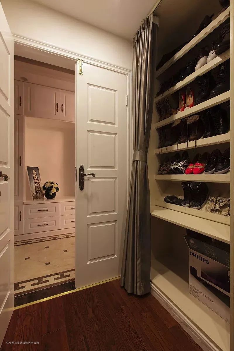 侧拉鞋架:侧拉鞋架可以实现最有效的面积存放。皮质的鞋子比较昂贵,要做好保养工作。在摆放鞋子之前,要先洗净鞋底,并用鞋楦或纸团撑起放在该区域中。