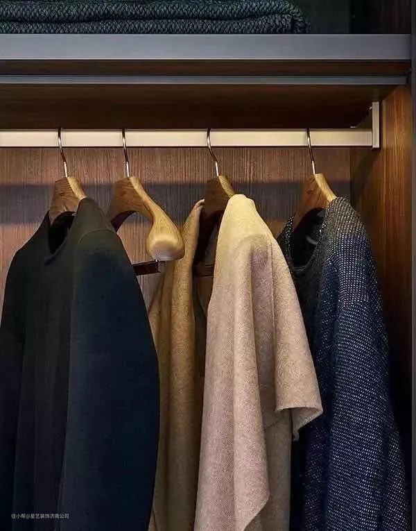 普通衣杆:衣帽间挂衣区要宽敞,每一件吊挂的衣物,都要保持适当的距离,不要拥挤在一块儿。