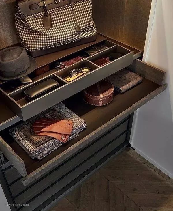 分格抽屉:丝质的睡衣是最不容易码放整齐的,女性的内衣也都怕挤压,专设的内衣抽屉,便于平放衣物,可以很好地解决这个问题。
