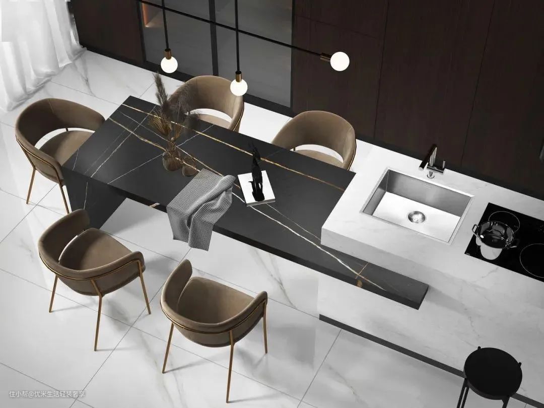 岩板非常适合厨房和卫生间洗手台台面使用,它的各项特质都是厨房和卫生间需要的,既好用又好看的台面非岩板莫属。需要注意的是岩板拼接接缝的处理相对比较麻烦,对安装师傅的要求比较高。