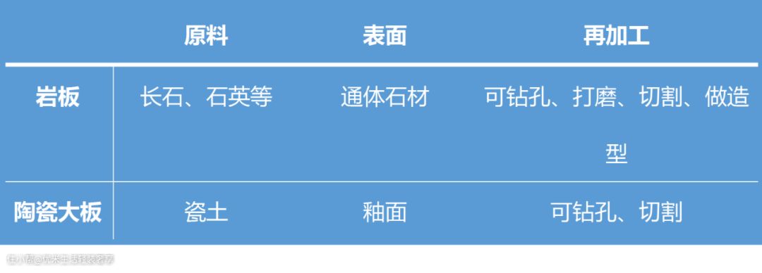 现在市面上有一种陶瓷大板很容易与岩板混淆,但是陶瓷大板≠岩板,陶瓷大板本质仍然是陶瓷,两者的区别如下: