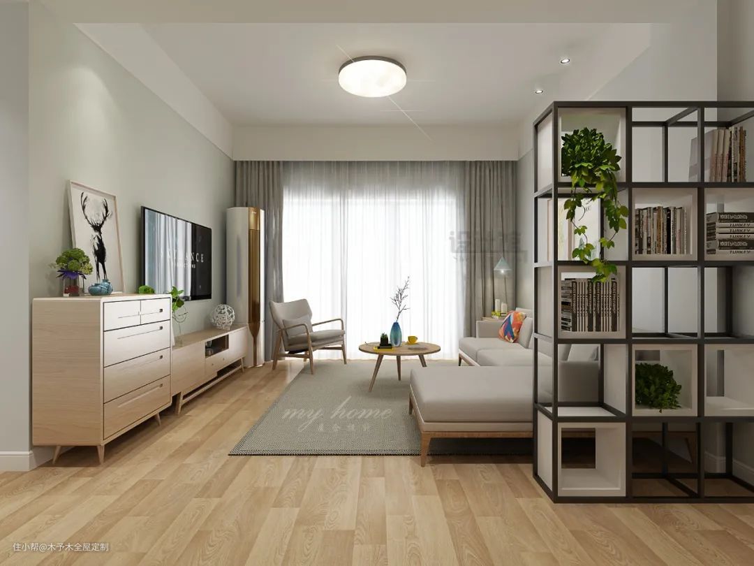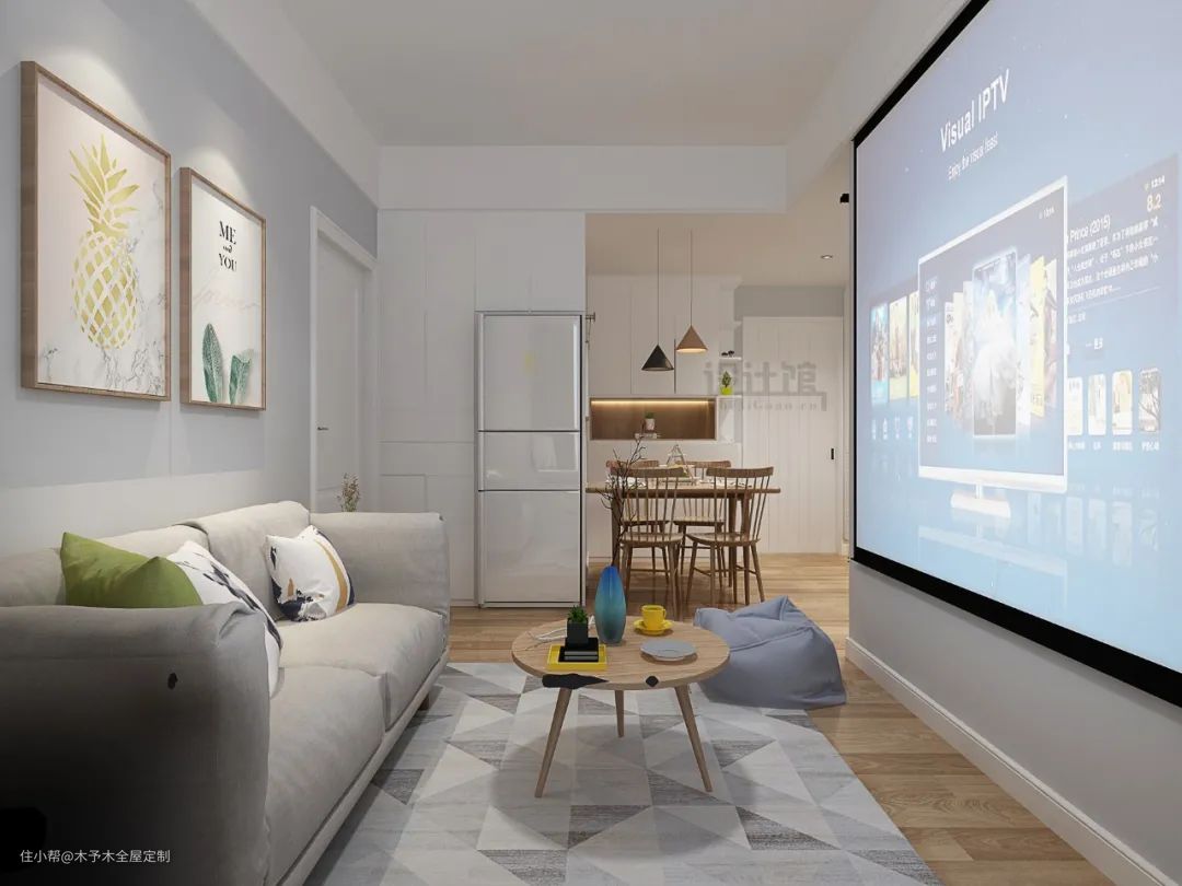 ▲餐厅区域装定制柜,客厅区域做背景墙。