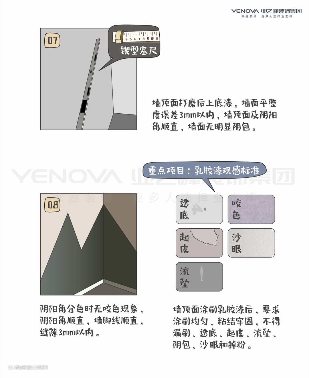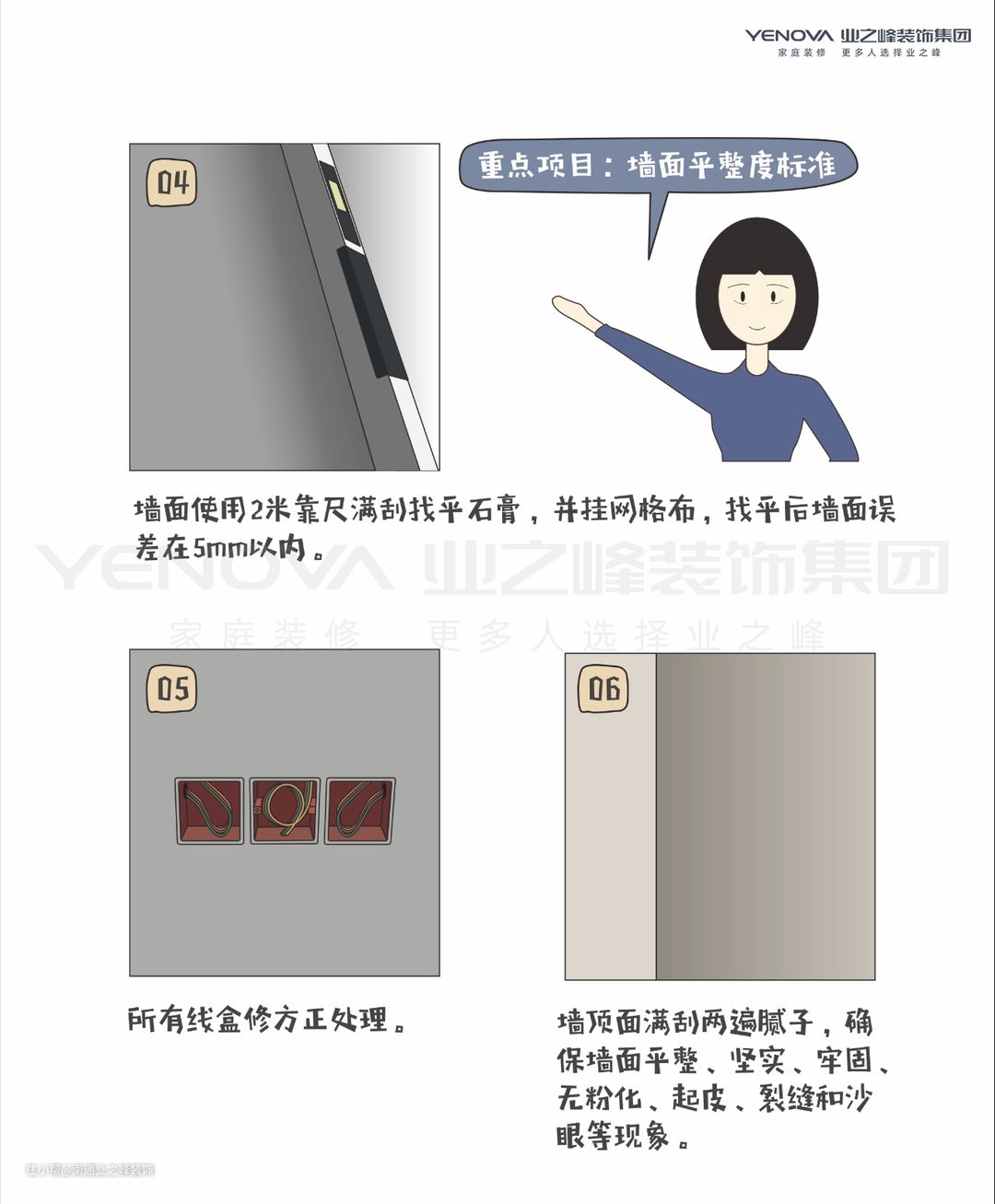 1、刮腻子:腻子一般刮两到三遍,需要注意的是每遍腻子干透之后才能再批下一遍,否则会出现空鼓等问题。