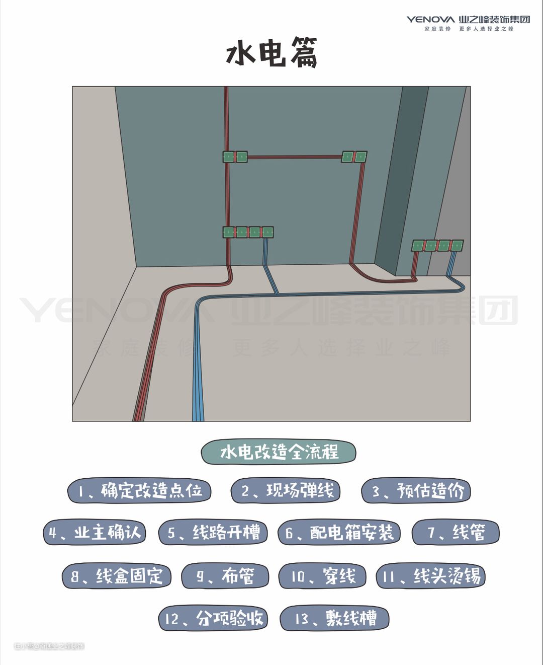 水电改造属于隐秘工程,都是埋在墙里面或者瓷砖下面的。后期不好拆改。所以,装修前一定要确定好开关、灯具、洁具、电器、家具等的具体位置。