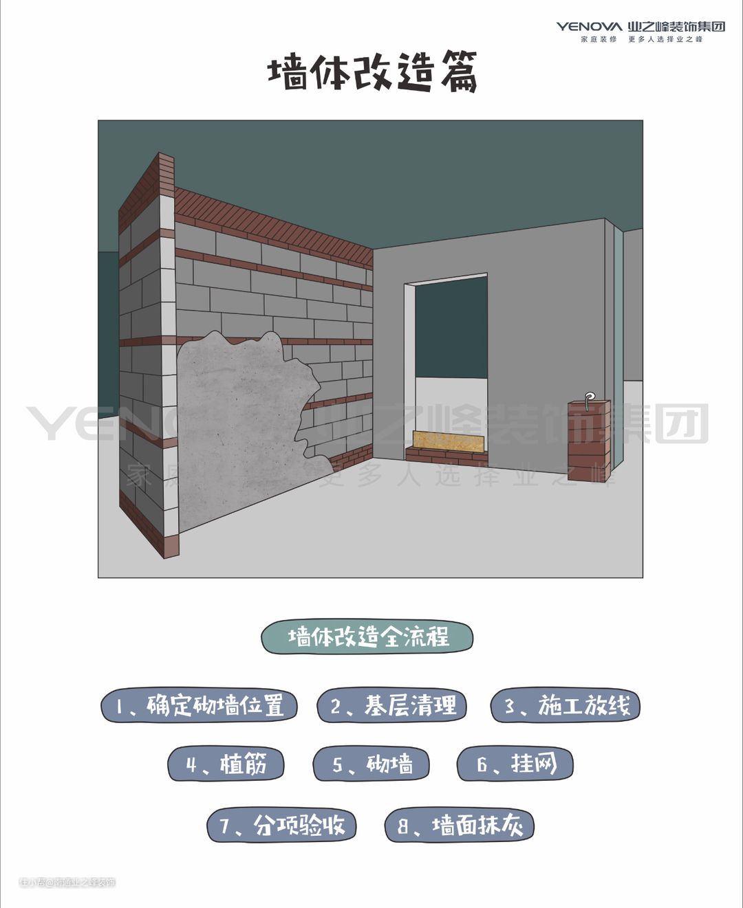 1、主体拆改是装修准备阶段需要做的第一件事,先要将施工框架搭建好。敲墙的时候要注意承重墙一定不能动。