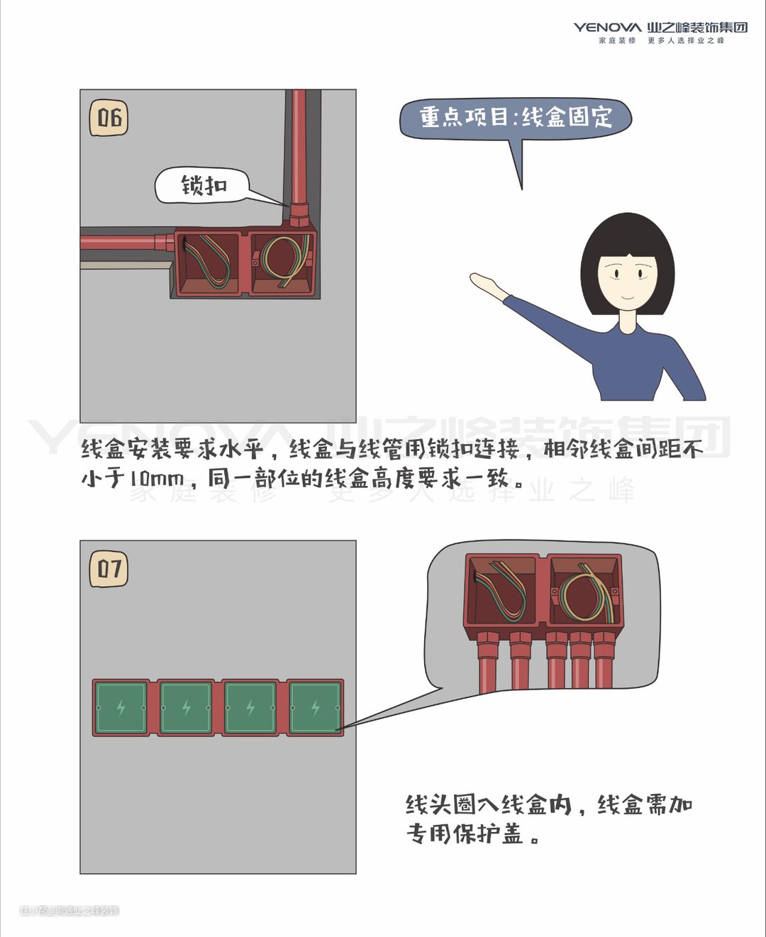 2、铺设线管及暗盒:注意线管、暗盒以及其他辅料的质量。