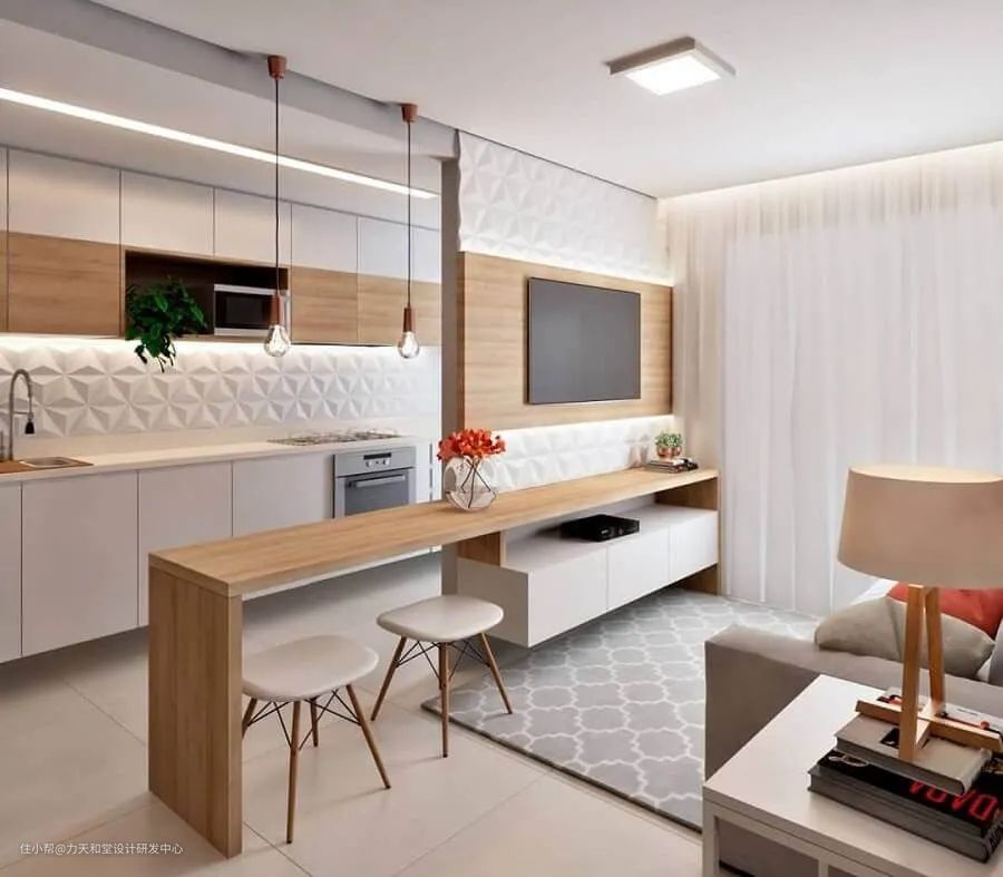 客餐厅甚至厨房打通后,可以很好地改善暗间的采光,并利用岛台或吧台,实现自然分区。