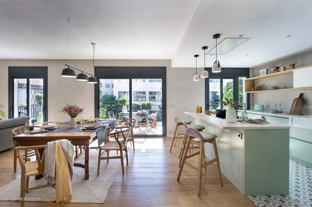 设计好开放式厨房,LDK的布局算是成功了一大半,接下来,再来将客厅餐厅合理地融进去。