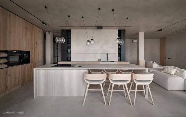 对于围合型布局的厨房来说,还有一种简单的布局,那就是设计吧台餐厅,作为厨房与客厅之间的隔断,实用性也超强。