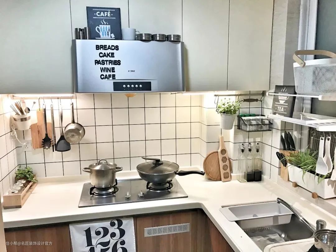 如果空间采光较差,还可以在柜台下方装上感应灯,方便日常烹饪工作。