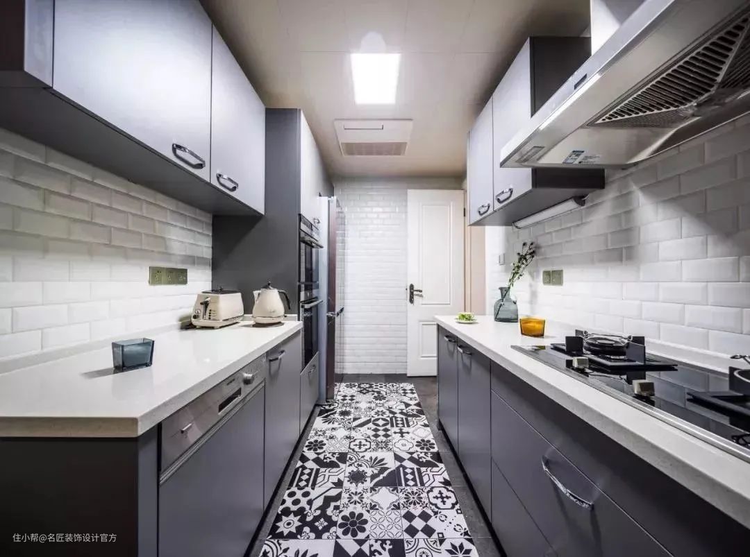 为了保持动线畅通,双线型厨房两边橱具的间隔最好保持在100-120厘米之间。双线型厨房厨房在空间的需求稍大一些,大约需要4-5平方米以上的空间,这样能最有效地运用居家空间。