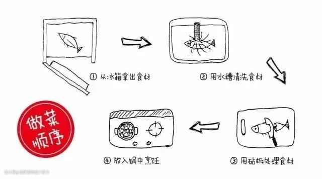有装修经验的小伙伴肯定都听过“动线”这个词,在整个空间有卧室和客厅的动静分区,在厨房里自然也有,那就是做饭的步骤。