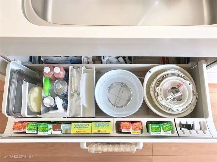 上面说最多只是外部的辅助,要想打造一个最实用的厨房,收纳观念最不可少。