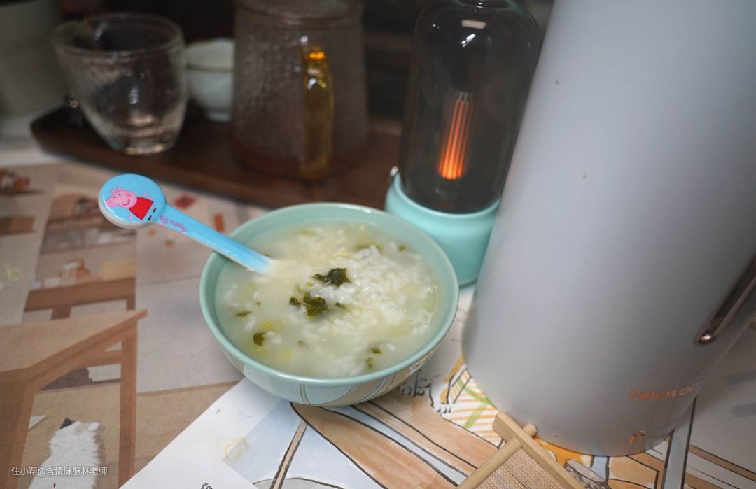 ▲蔬菜粥,算是日常早餐比较清淡的,适合家里有刚可以添加辅食的家庭,小朋友吃起来比较好,配料也比较简单,一点白菜青菜切碎,加上一些大米,直接制作, 省时省力。