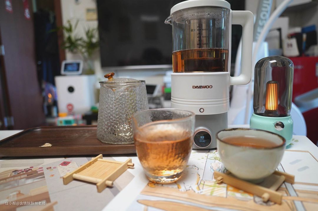▲茶汤的颜色不错,而且大宇养生壶还有保温功能,冬季使用更不用担心水冷茶凉。除了煮茶之外,大宇养生壶还有燕窝,花茶,果茶之类的功能。养生汤,虫草,等等功能。