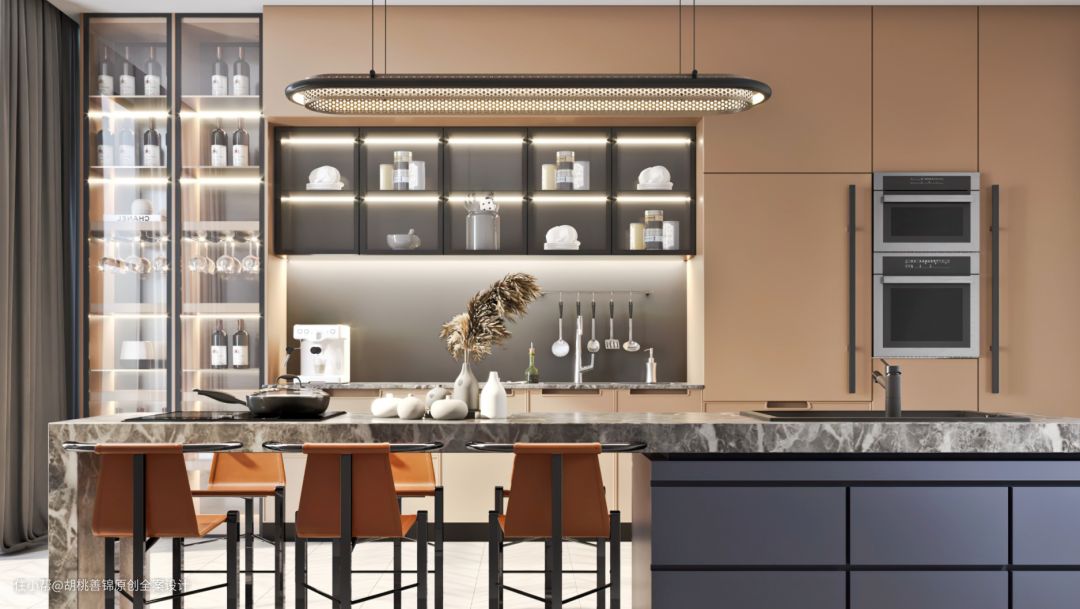 所谓的社交厨房,这不仅仅是一个纯粹的朋友聚会或招待功能,在设计中更有价值的是能够与家人互动,它也是家庭间情感交流的场所。