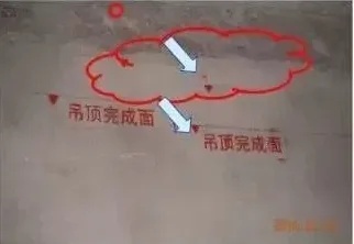 ⑤以顶面完成线为基准,向上延伸250mm放制机电控制标高线。