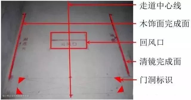 此种放线方法称为平行放线法,也称为走道施工法或门套成品化放线施工法。