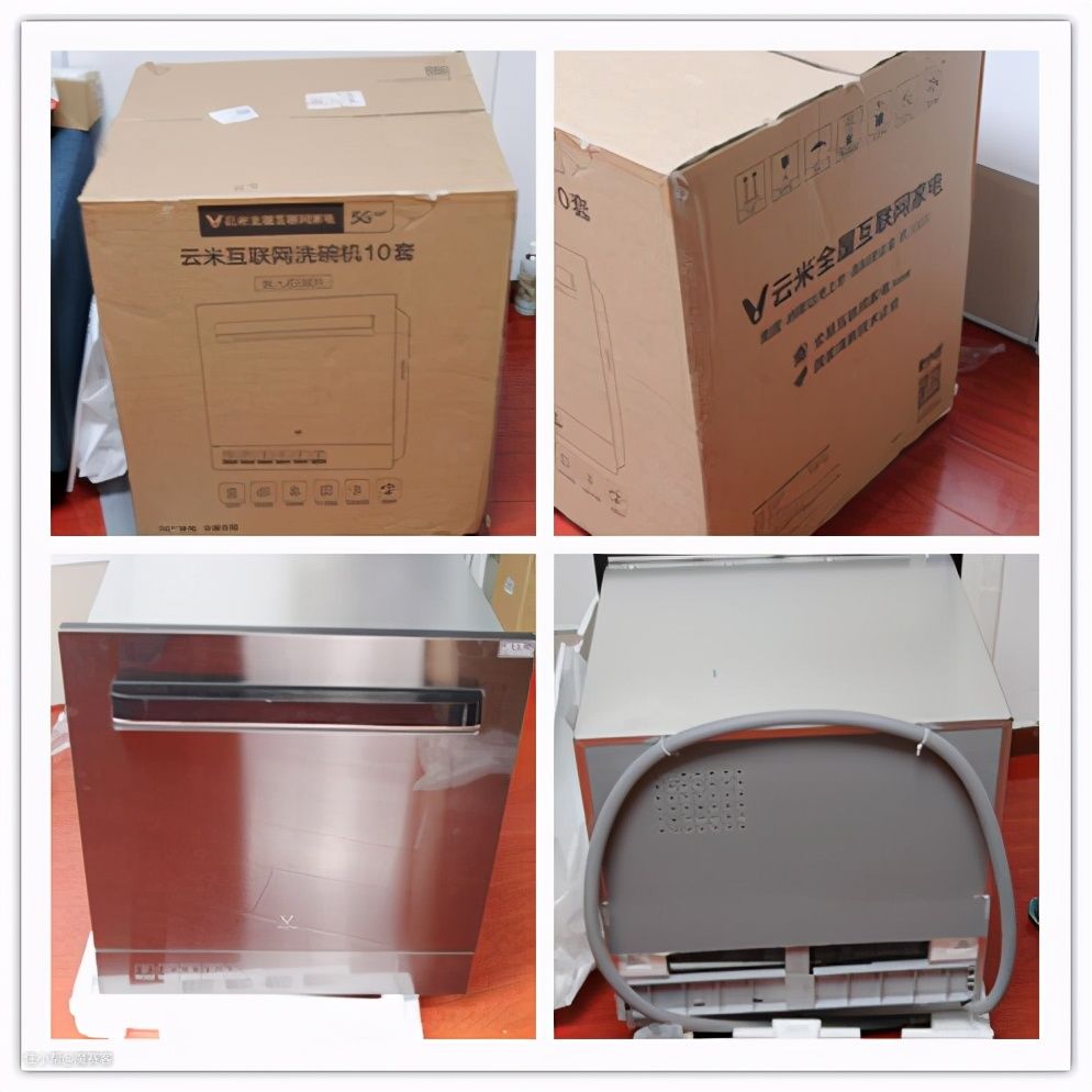 ▲云米的客服算是比较贴心的,基本东西到之前就会有人联系预约安装,而快递员一个人从一楼搬到六楼毫无怨言。包装走的是简约风,打开后可以看到面板程亮的洗碗机本体:云米(VIOMI)智目洗10套大容量嵌入式家用洗碗机VDW0805。