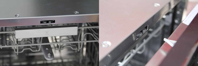 ▲洗碗机顶部为一个喷淋臂,一个感应灯。感应灯在洗碗机门打开时会自动点亮。