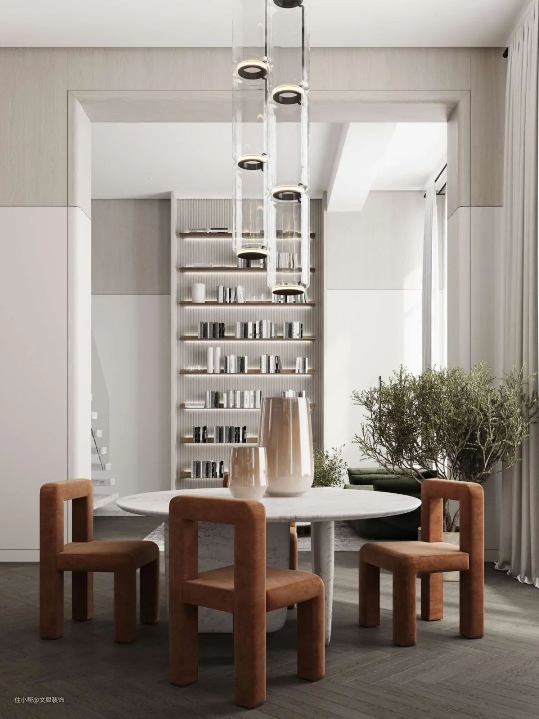 储藏柜既能储存器皿、书籍又能充当隔断,完美划分空间布局。