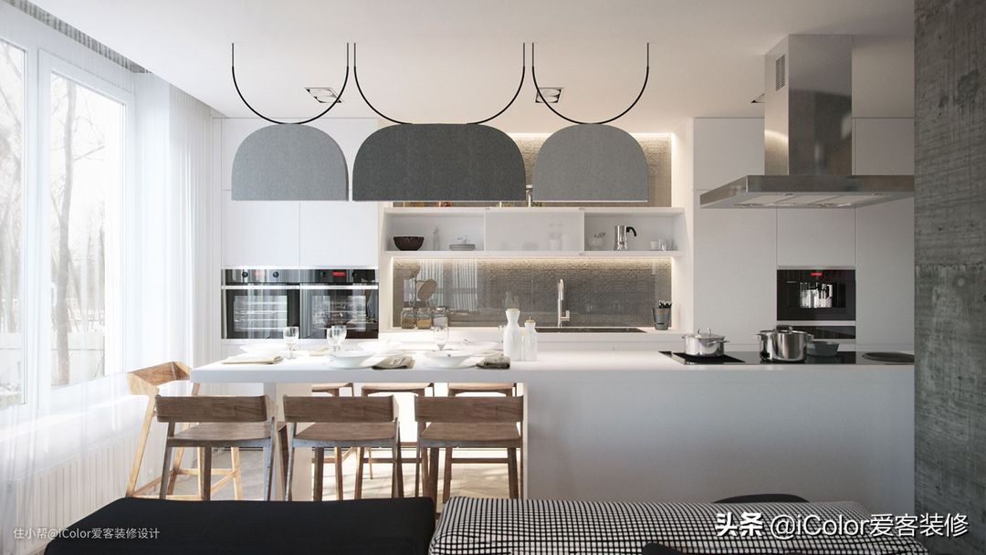 餐厅厨房一体化设计,小资轻奢厨房装修的心机,真高级
