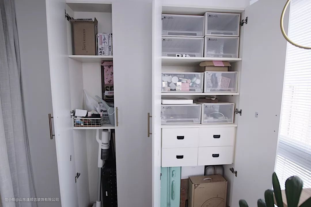 阳台侧边还有一个收纳柜,除了本身带有的隔板,主人还买了很多收纳盒来进行收纳,东西摆放井然有序。