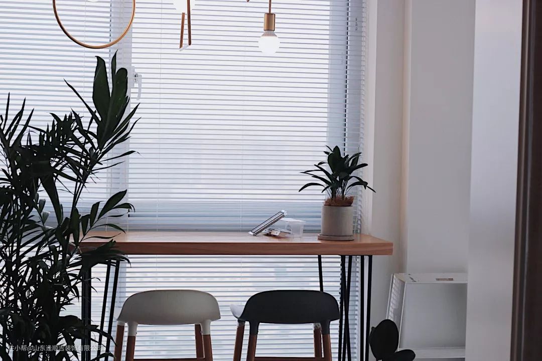 阳台靠窗布置一张休闲书桌椅,在这里既可以办公休闲,也可以看书远眺,清新精致的布置,也为这个明亮的空间带来了雅致的情趣。