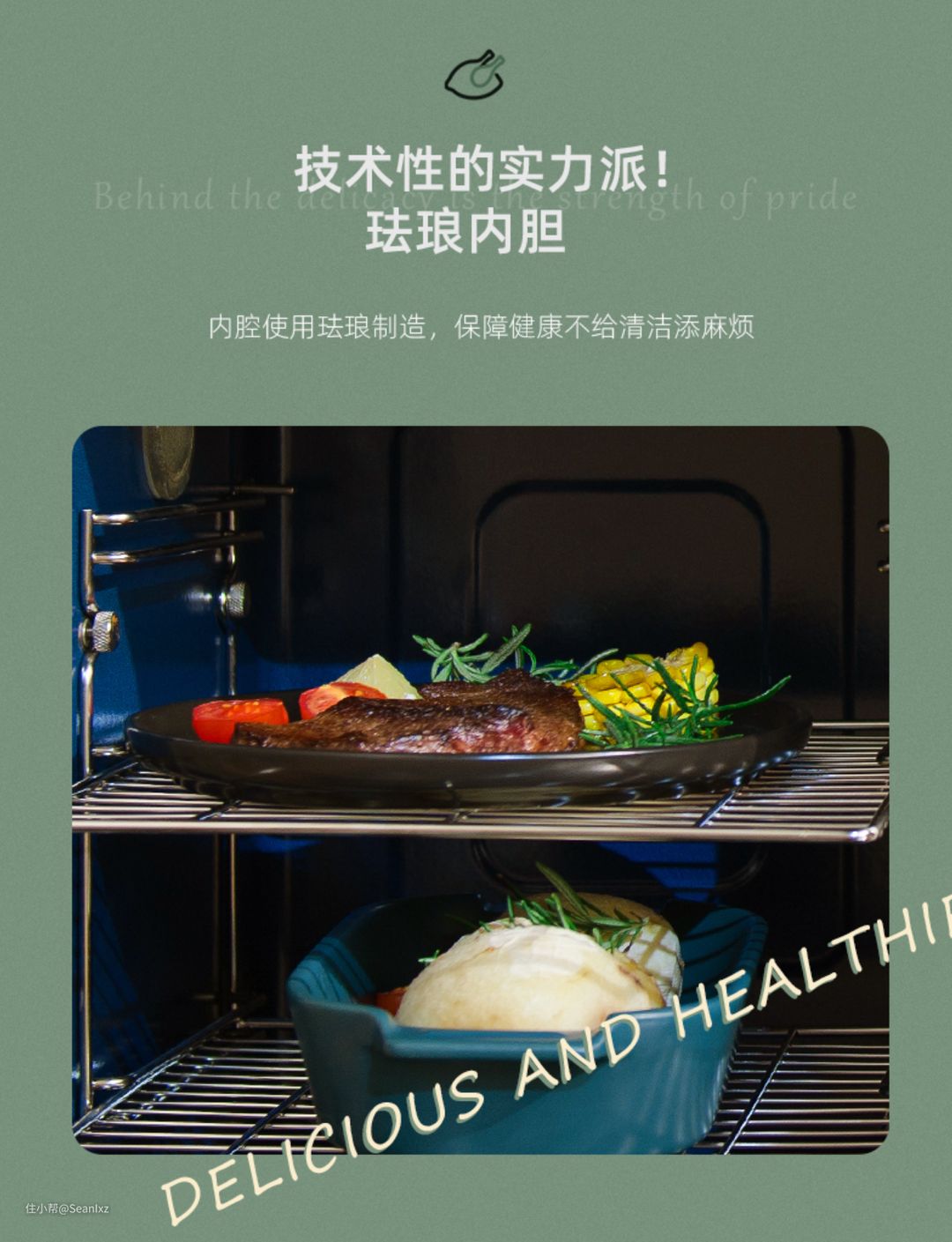 除了德普的陶瓷内胆,还有这款板川P20DZK上采用了蒸烤分体式的设计,在单体烤箱内胆材质上采用了珐琅材质内胆,抗油污能力进一步提升了,珐琅看着是最靠谱的方式。