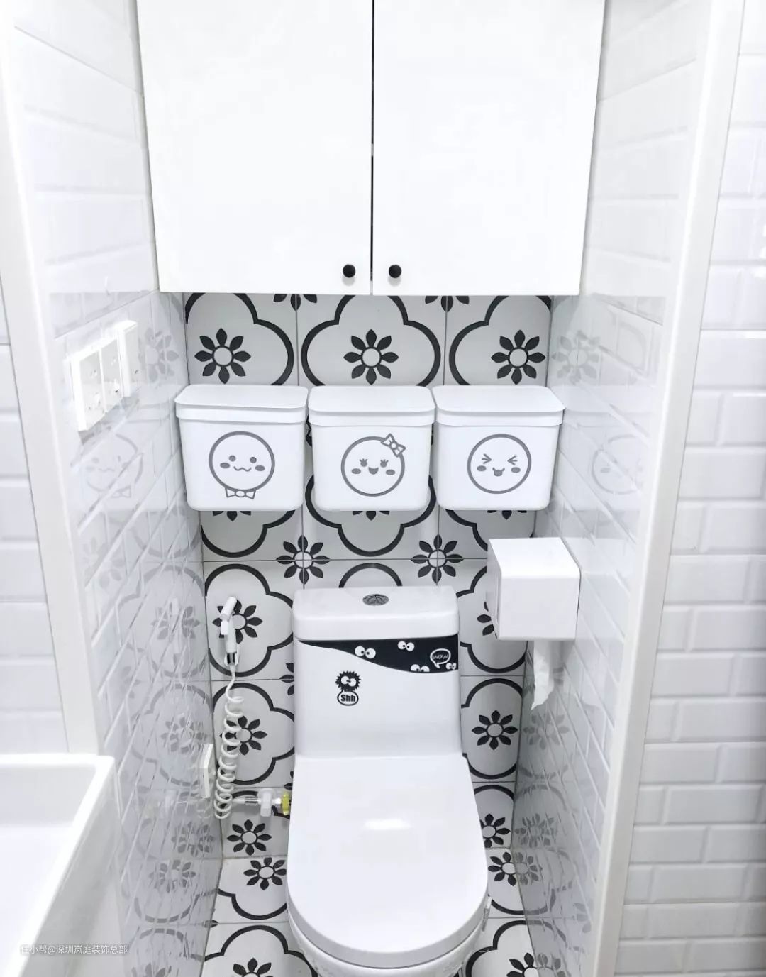 任何角落都不能放过,连马桶旁边的墙体也可以利用起来做成收纳架,增加收纳空间~