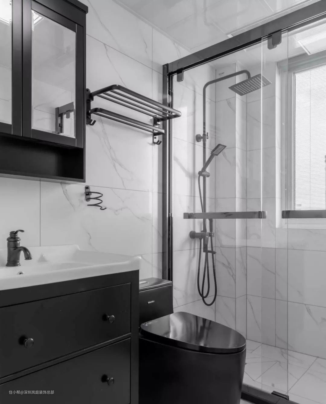 如果凹进去的地方刚好是窗边?壁挂式马桶水箱的假墙刚好填平这个深度,可以说真的超合适。