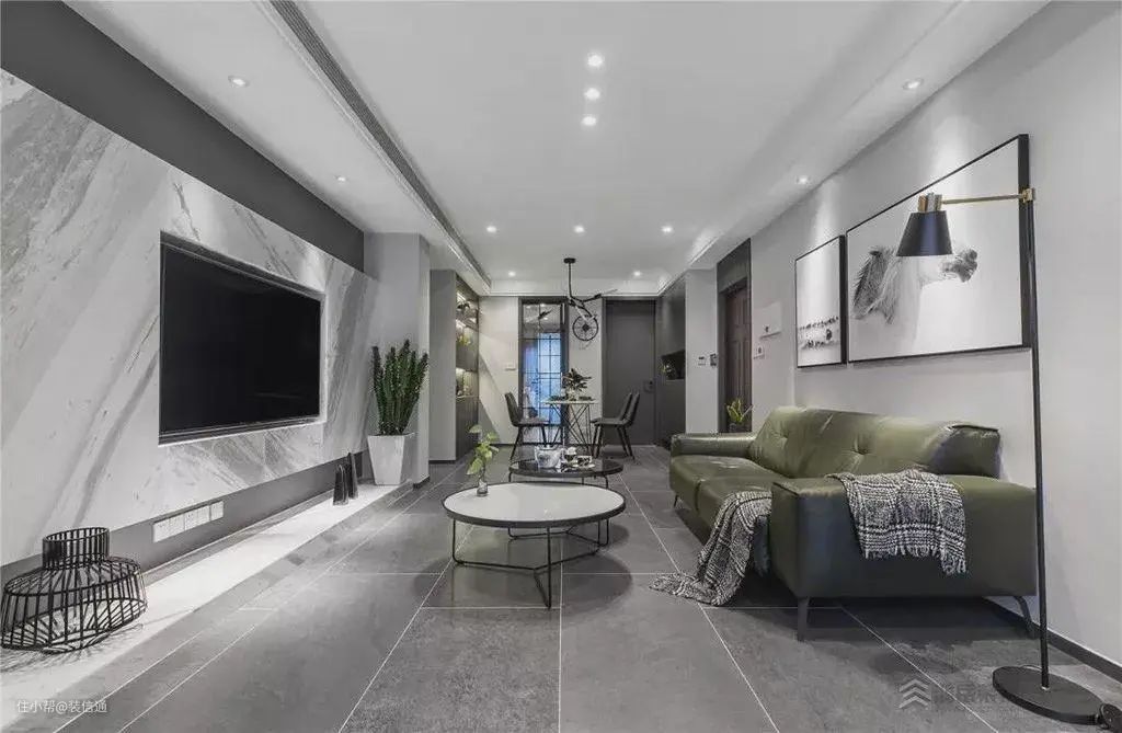 这是一种顶面照明与低处照明相结合的客厅无主灯设计方法,这种照明布局方法也是目前使用最多的。