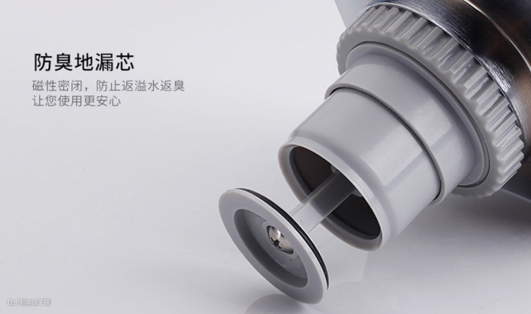 缺点:污水中细小的铁质杂质吸附在磁铁上,导致两片磁铁无法完全闭合;其次,钕铁硼磁铁在水中会氧化和粉化,磁力会逐渐衰减,遇热水会失效,导致密封盖板无法密封。技术好负责任的厂家,选用永磁材料,磁铁消磁现象则会比较轻微。另安装高度要求比T型弹簧式铜地漏芯会高。