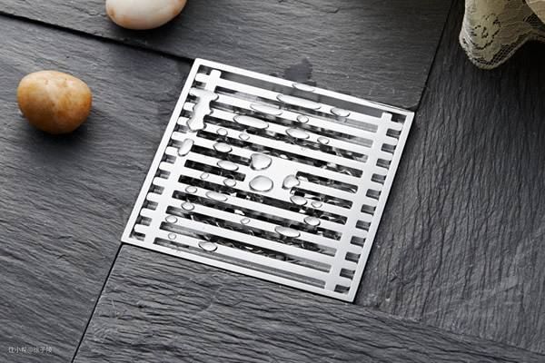 4、隐形地漏:可以把面盖翻转过来,放进切换好的地砖,这样地漏基本看不见,整体非常美观。不用这种地漏常规尺寸都是10*10,相对普通地漏收水面积较小,在淋浴区水流量比较大情况下,排水相对会慢点,用在干区会更多,如要在湿区安装隐形地漏,建议可以选择更长尺寸的隐形地漏,如20或30CM长,收水会更快。