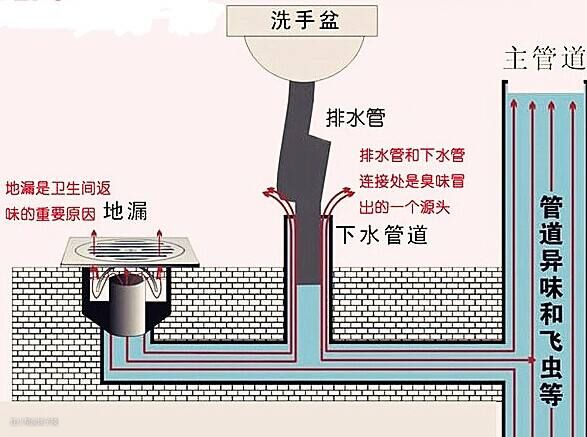 卫生间异味来源有4个主要渠道:一是地漏不防臭,二是浴室柜排水管和下水管道连接处没有密封,三是马桶返味,四是浴室排风扇未安装止逆阀。