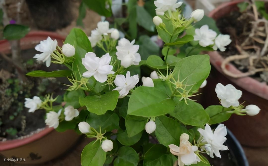 茉莉是南方花卉,室外地栽的茉莉,光照足,哪怕施肥跟不上,花苞照样也多,香味也浓,这是光照的功劳。北方养茉莉,或者室内盆栽养茉莉,一定要注意光照。