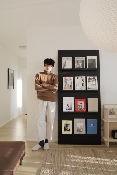 桌子的侧面放了两组矮的,一组高的置物架,用来放杂志,我收藏的一些设计单品,植物 非常喜欢直物人对这个架子的介绍:“一切就像你看上去的那样,简单至极,不加任何多余的东西,源于材料本身,完全体现材料本身的的质感,铁就是铁,钢就是钢,木头就是木头”这种自然做减法的设计理念也是我一直追求的 置物架:直物人工作室 边几:mini more