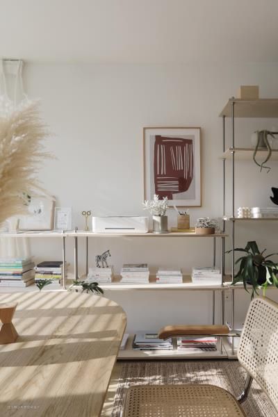 置物架在桌子侧面可以很方便的拿取东西,像打印机一类的设备也选了款式最简单的,红色的几何色块的装饰画和房子的风格很搭,之前我是不喜欢红色的,但现在愿意买一些红色的单品了,因为现在觉得红色是一种很温暖又充满质感的颜色 打印机:小米