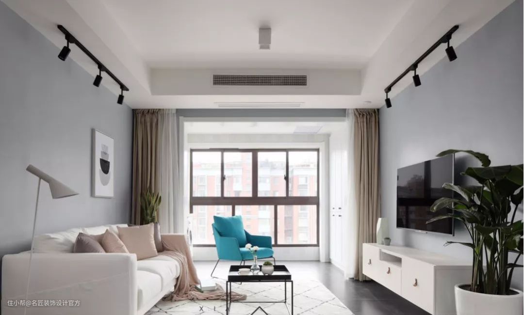 因此,小匠建议这类户型的业主将客厅与阳台打通后,做留空设计,一不堆积过多的家具,二不规划过于冗杂的功能,这样才能让整个空间的视野变得更加“空旷”,从而使得整个小户型看上去,非常的简单大气。