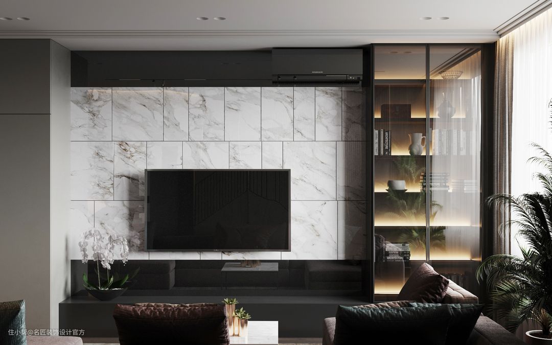 两边入墙打柜丝毫不会影响客厅阳台的采光效果,这种设计方式更能显得整个阳台都是客厅的补充部分,客厅也就轻松实现了扩容。
