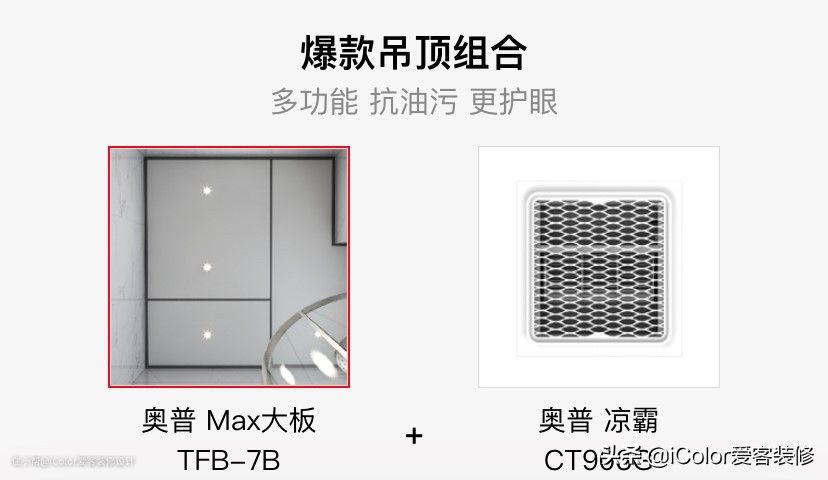 由塑胶或树脂为原料制成的板材,需搭配轻钢骨架在板材上嵌入灯管,兼具造型与照明效果。但它受热易变形,因为价格较低廉,对厨房装修没有过高要求的家庭会选择使用它。