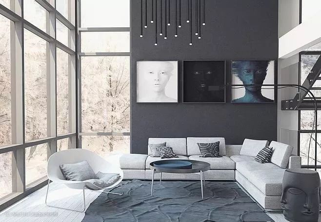 4.1 室内配色,最好只有一种主色调,然后选一到两种辅助色对比色,用来调节客厅的颜色纯度和明度的变化,但是对比色的面积和种类要少,否则显得又乱又廉价。