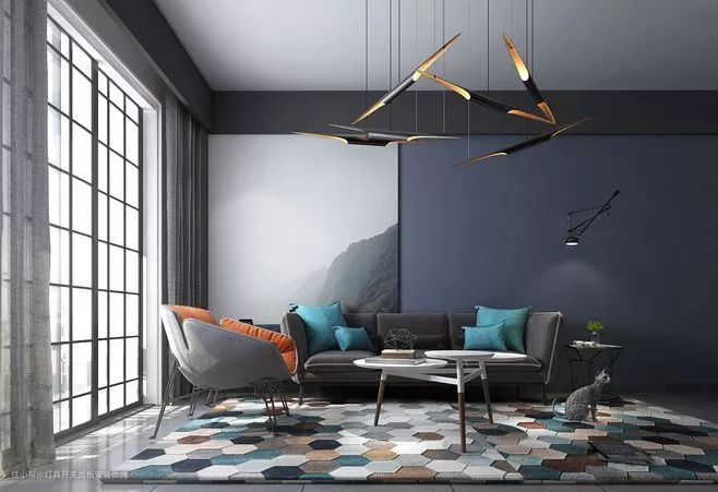如果您的客厅是半墙裙或金色墙,切忌艳丽颜色,应重点选择素色面料。要想达到现代派效果,抽象几何图型及难以形容的颜色适合不过了。