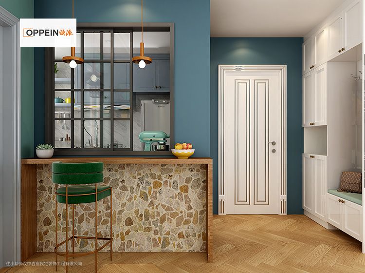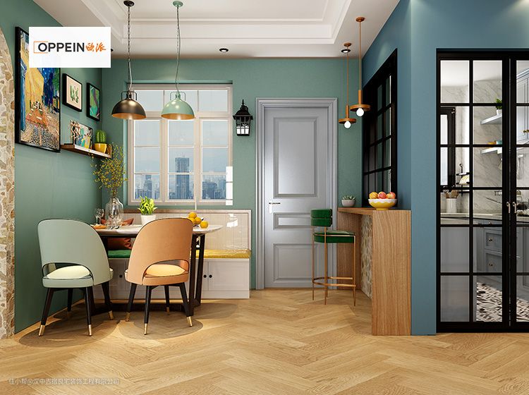 厨房与餐厅墙壁打通安装玻璃窗,改变之前房子封闭狭小的感觉,将空间放大增加采光与互动能力,使得主人下厨不再憋闷。